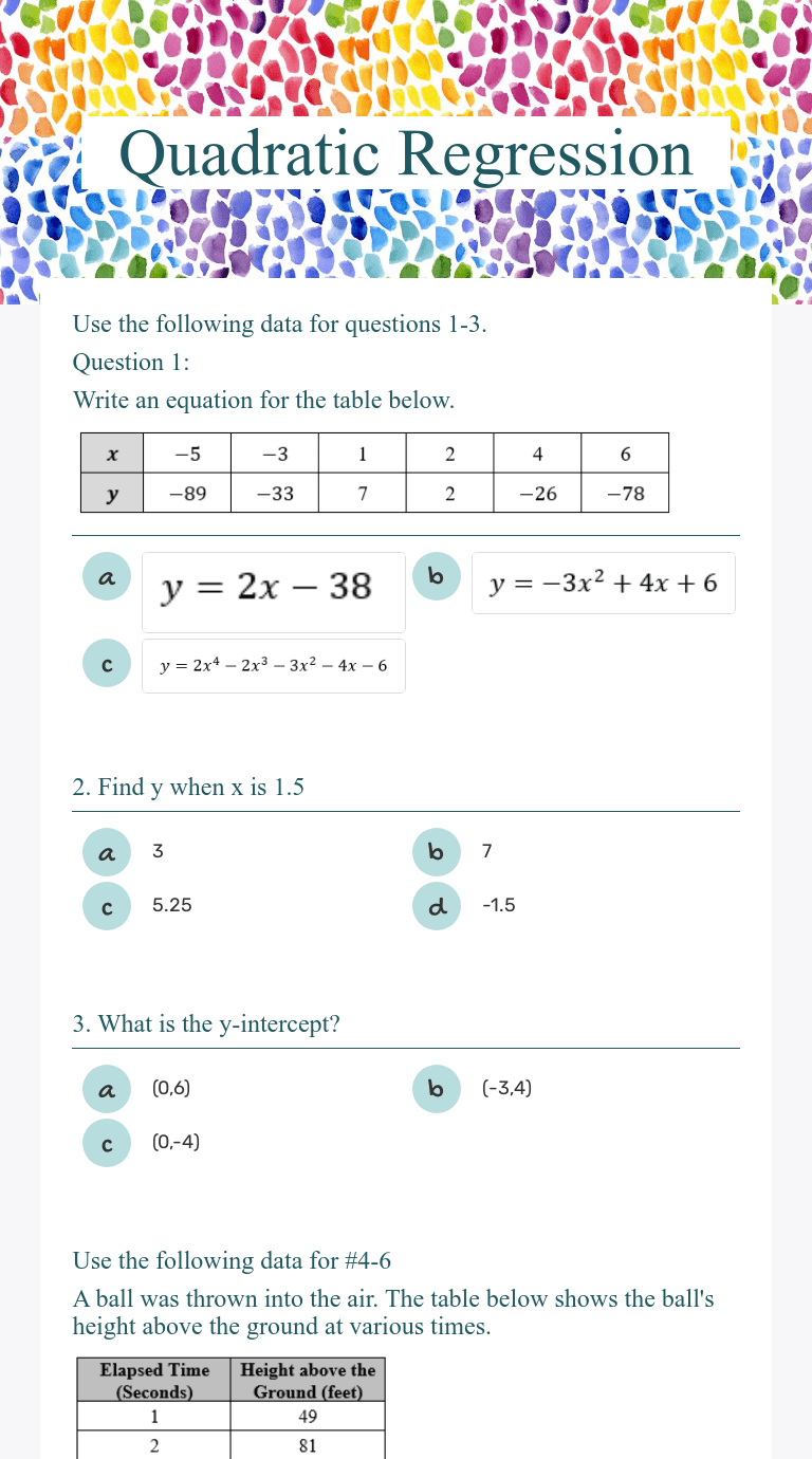 Math 3 Quadratic Regression Worksheet / Quadratic Regression Practice Worksheet Answers Jobs Ecityworks :. Many kids balk at completing math worksheets. Some students love math — others not so much. Give your students the gift of learning with these christmas shopping math word problems. Enjoy the five worksheets with answers on the second page of each pdf. Word problems can be perceived as the dreaded bane of your students' existence, or they can be a walk in the p.